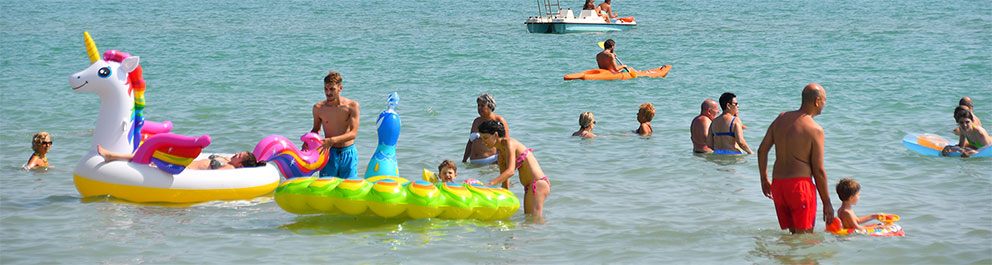 SpiaggiaSpiaggia sabbiosa e mare che degrada dolcemente...La nostra spiaggia sabbiosa e il mare che degrada dolcemente daranno a tutta la tua famiglia la possibilità di godersi il sole e l'aria marina. L'animazione aggiungerà un po' di brio e di musica alla tua mattinata in spiaggia con i giochi sulla sabbia per bambini e i giochi di abilità per gli adulti. Vediamo quanti buoni aperitivo riuscirai a vincere! Se hai scelto una delle nostre strutture sai già che ci sono per te riservati un ombrellone, un lettino e una sdraio. Se hai optato per una piazzola per tenda o camper ma vuoi vivere al meglio la nostra spiaggia puoi passare alla reception per scegliere quale ombrellone preferisci avere, saremo lieti informarti su disponibilità e tariffe.